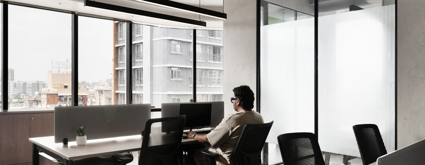 In Borivali, Mumbai, this office is designed as a structured yet comfortable workspace that supports both
